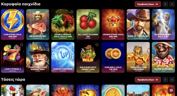 Προσφέρουμε μια ισορροπημένη βιβλιοθήκη σε Κουλοχέρηδες, Live Casino, Επιτραπέζια Παιχνίδια, Ειδικά Παιχνίδια και Στοίχημα, με περίπου 96% μέσο RTP που αναφέρεται σε όλο το χαρτοφυλάκιο του καζίνο. Αν σας αρέσουν οι γρήγορες συνεδρίες, μπορείτε να φιλτράρετε ανά μεταβλητότητα, χαρακτηριστικά και πάροχο για να περιορίσετε γρήγορα τη λίστα. Οι λάτρεις των reels θα βρουν τα πάντα, από κλασικές διατάξεις έως κυκλοφορίες γεμάτες features, συμπεριλαμβανομένων κουλοχέρηδες SpinoGambino από πολλαπλά στούντιο. Για πολλά παιχνίδια, διατίθεται λειτουργία demo ώστε να μάθετε τους κανόνες πριν ποντάρετε πραγματικά χρήματα.